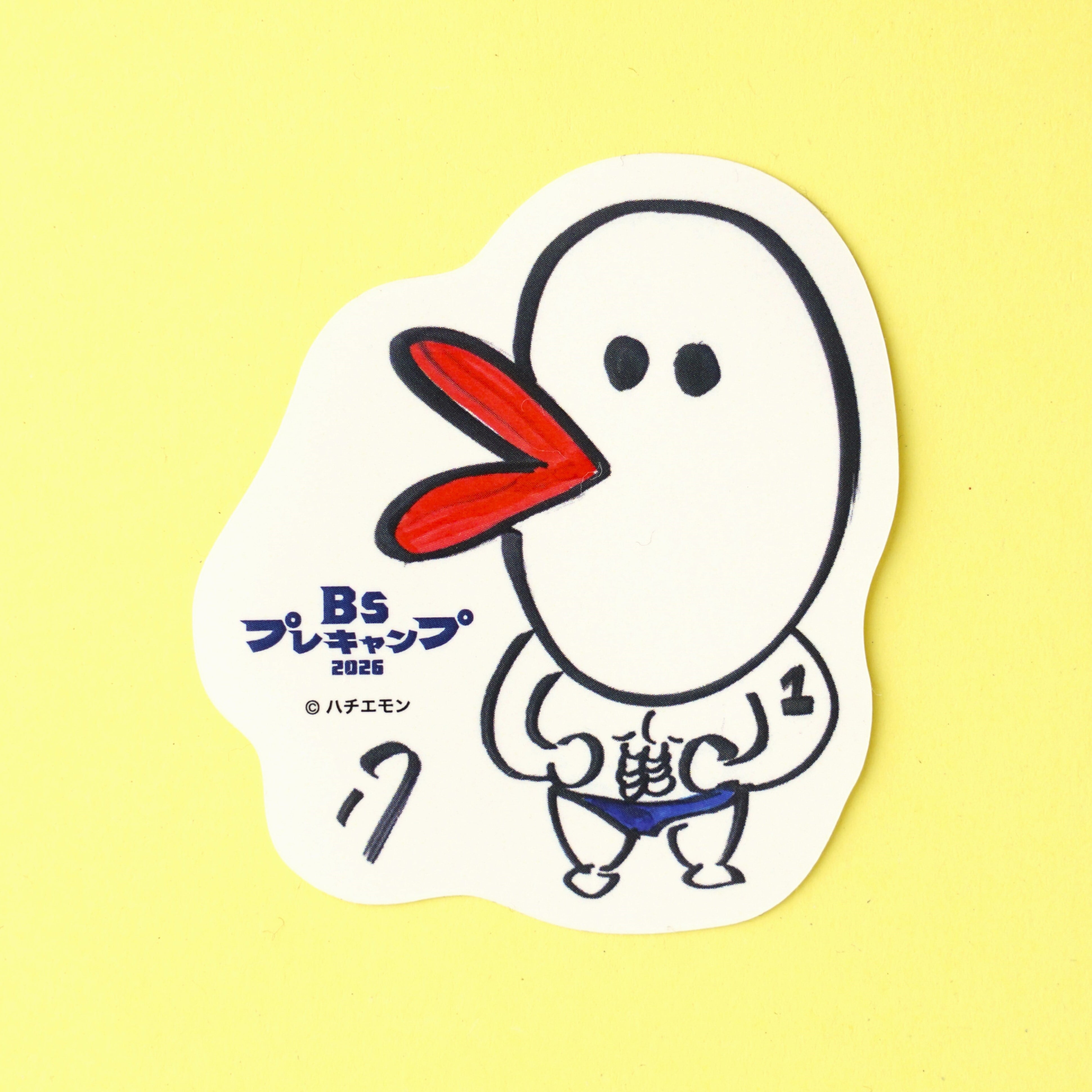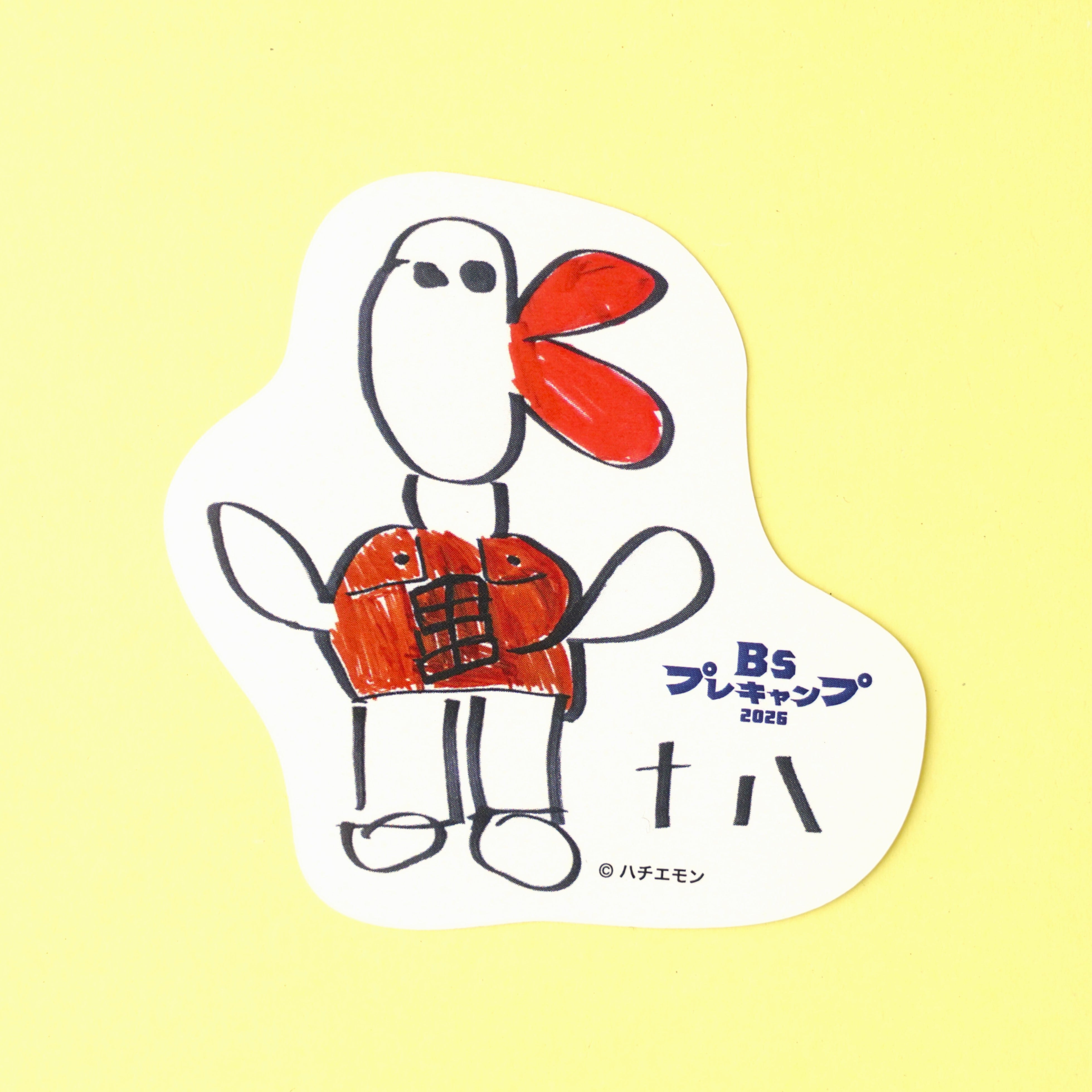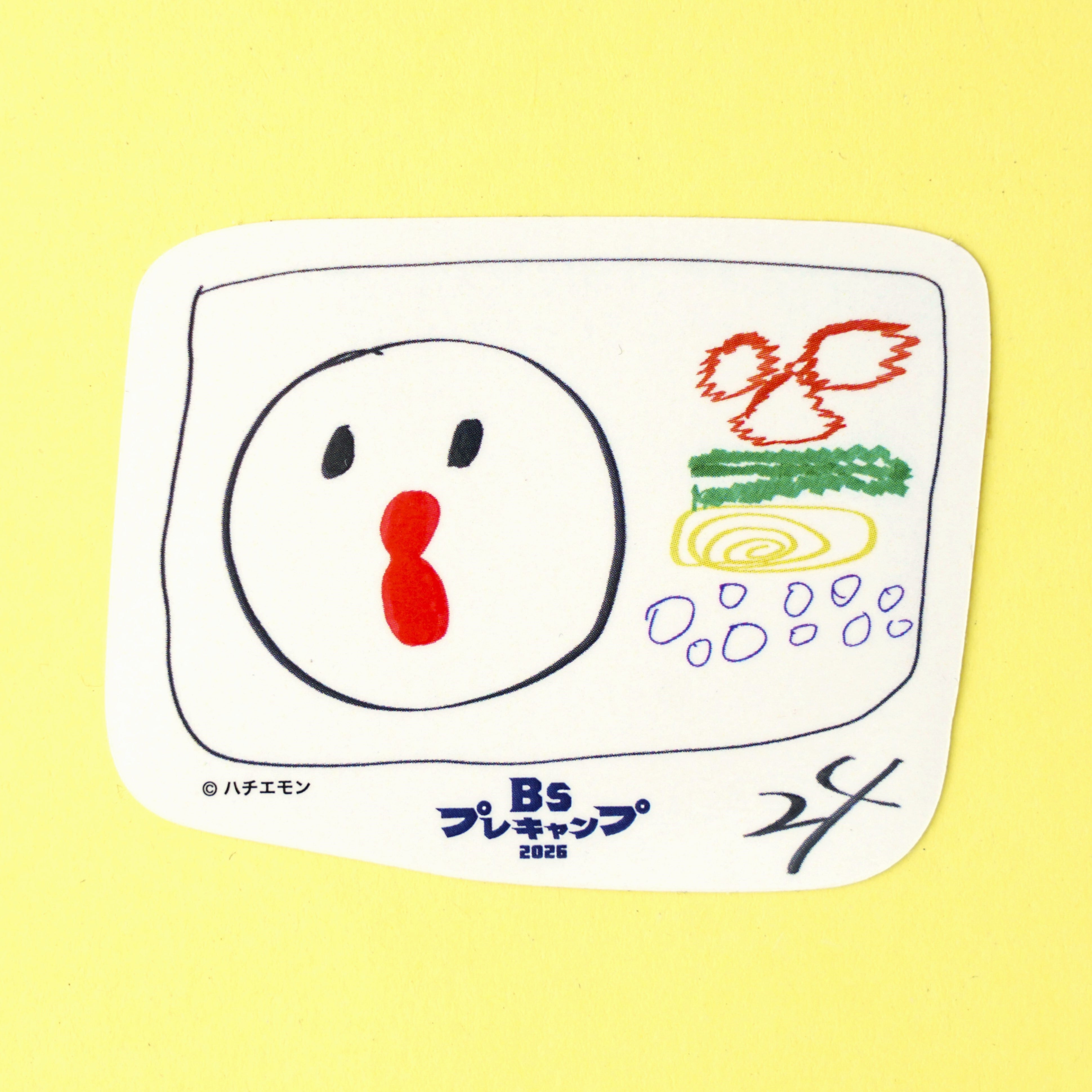 原画には『そたえもん』『(龍)平くん』の文字も。曽谷投手のお名前の一字をキャラクター化させた、龍バージョンのハチエモン。同い年の曽谷投手への愛情が表れた作品です。